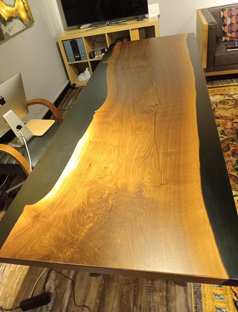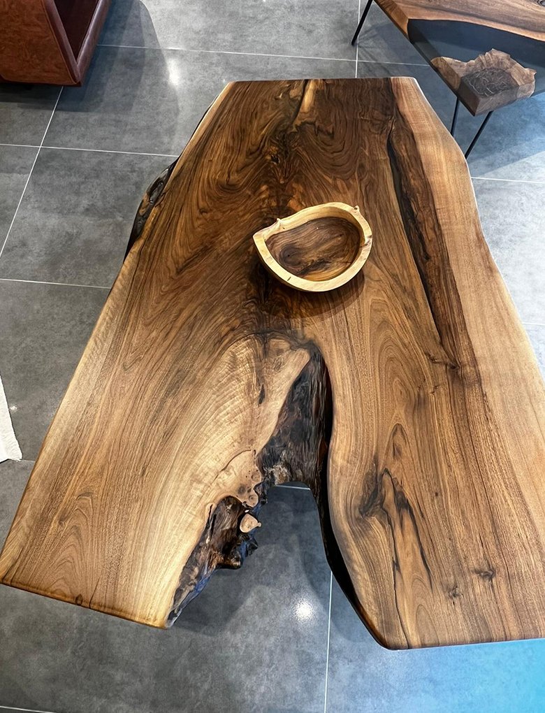 Our epoxy tables are made just for you with genuine black walnut slabs that were milled in Turkiye, hand-sanded, and finished